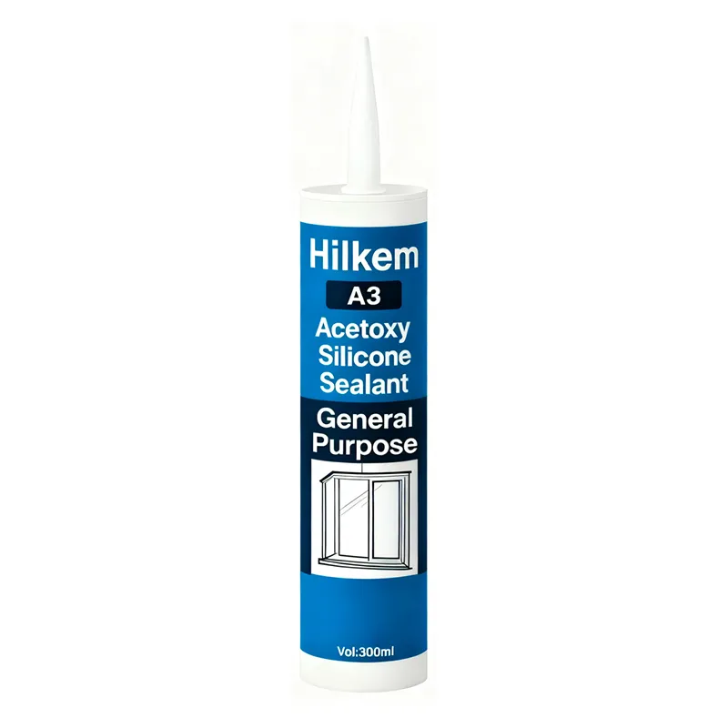 HILKEM A3 is one-component, acid-curing, semi-transparent, high modulus, fast-curing room-temperature silicone sealant. It is mainly used for ordinary indoor glass cabinet installation; Installation of indoor doors, Windows and wardrobes Sealing of indoor glass joints; Ceiling bonding and sealing; All kinds of temporary (such as short-term booth decoration) bonding, joint filling and sealing, as well as other applications that have been tested and are applicable.